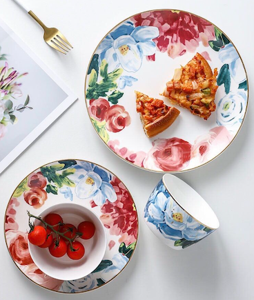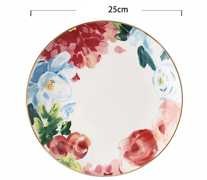 Rosie Plate  Material: Porcelain Size:  Dinner Plate: 25cm Salad Plate: 20cm Soup Bowl: 11cm What's in the package? 1 x Rosie Plate Care: hand wash...